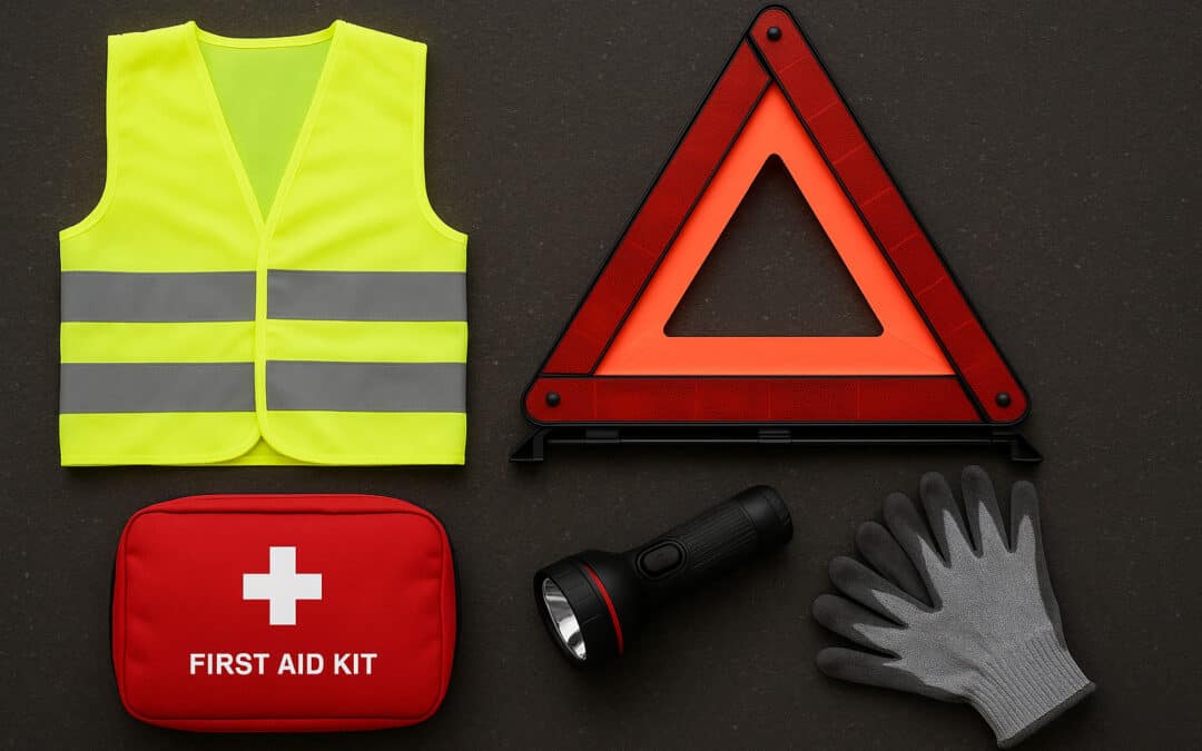 TL;DR: Poza obowiązkową gaśnicą i trójkątem miej zawsze w aucie: kamizelkę odblaskową, apteczkę, latarkę, kable rozruchowe/powerbank, rękawiczki, koc i wodę. To małe rzeczy, które mogą zrobić wielką różnicę.